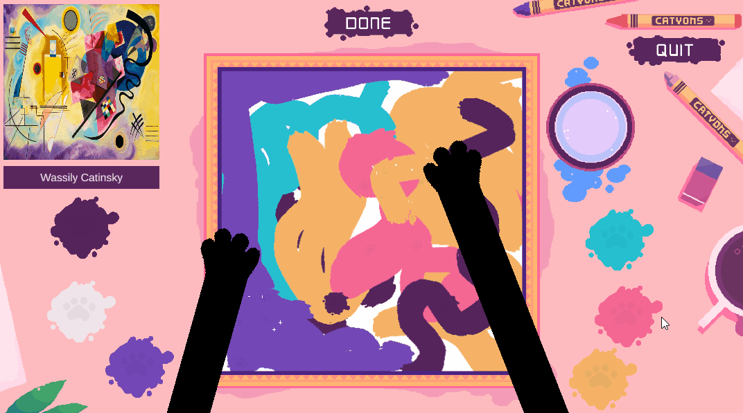 In "Pawlo Purrcasso" you will play a cat who just happened to destroy all the artworks for her exhibition. In order to save it, you become the artist yourself and try to recreate the paintings with your paws. Maybe the exhibition will still become successfull!